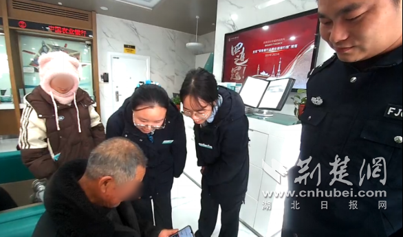 上午 10 点左右12月12日,湖北省宜城市公安局孔湾派出所接到辖区农行工作人员的紧急电话,称70多岁的顾先生欲提取1万元现金转给诈骗犯。接到报警后,民警杨金鹏、副警官郭梦娣立即赶赴现场处置。