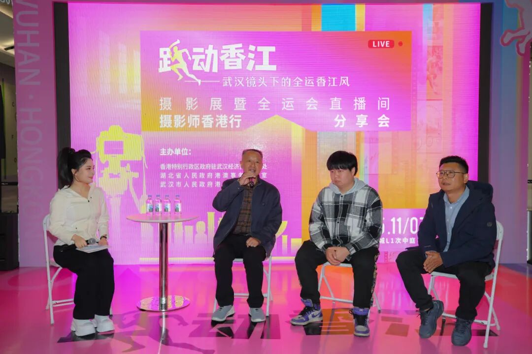 11月17日,香港特别行政区政府驻武汉办事处在武昌万象城举办“活力香港:武汉镜头下的港式全运会”图片展暨全国大赛直播间摄影师香港旅游分享会。邀请从香港归来的“武汉发布”城市摄影团队的摄影师分享他们的香港之行的趣闻和经历,帮助大家了解镜头背后的两个城市的故事。