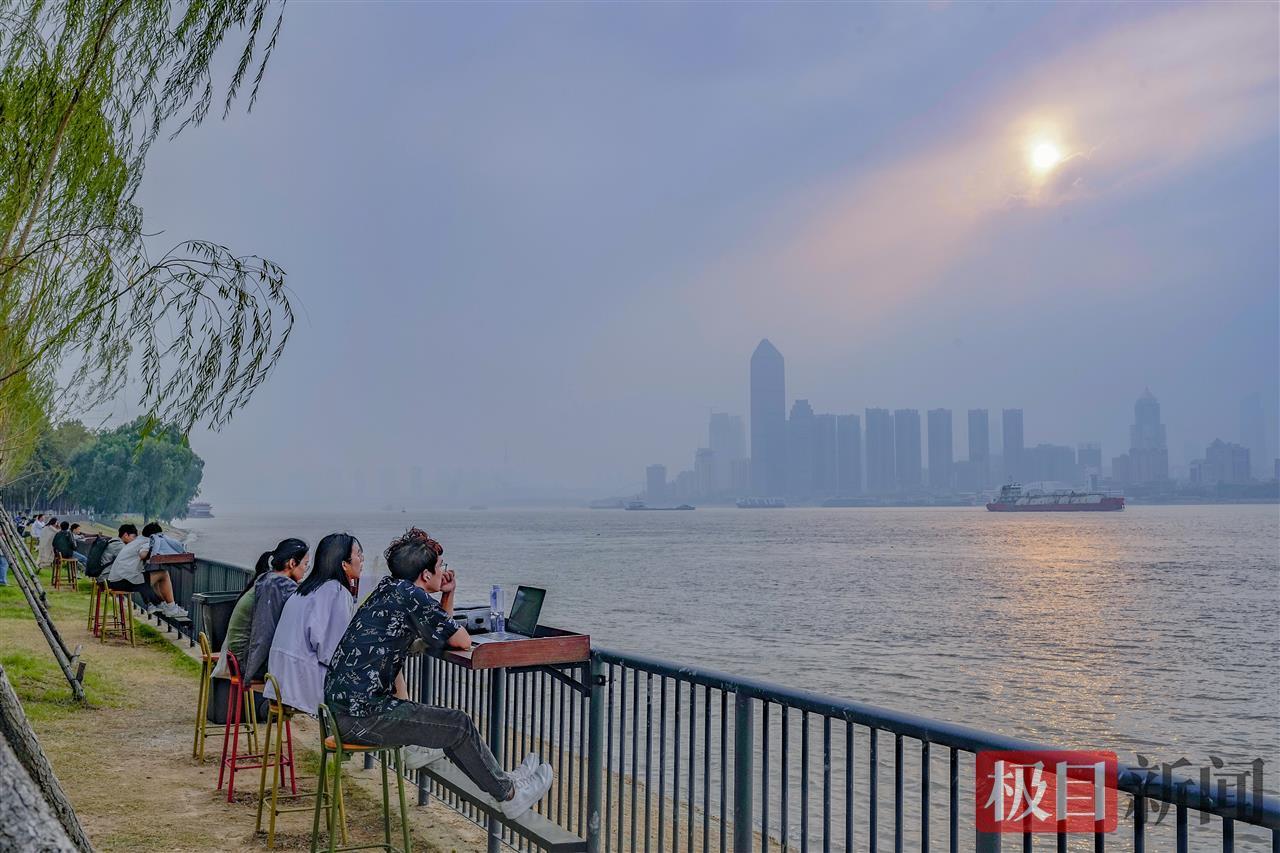 武昌河滩沁源路门沿江新看台刚刚安装完毕。它们沿着河岸一字排开,深受人们喜爱。 10月14日,众多市民和游客专程前来体验。这些座位面朝长江。坐在凳子上,一览无遗的江面,俯瞰江面的浩瀚和城市的繁华。下午,太阳西斜,阳光透过云层照射到河面上。海浪闪闪发光。河风轻轻拂过我的脸庞,长长的波浪轻轻拂过我的耳垂。这首诗永远留在了我的心里,我心里的安慰越来越强烈。